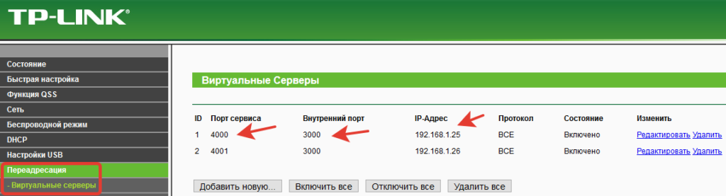 Обратите внимание, здесь мы сделали проброс портов для камеры 192.168.1.25. Для примера добавили еще одну камеру с IP-адресом 192.168.1.25