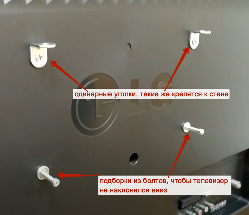 - дополнительно может потребоваться набор шайб, если болты будут слишком длинные и плотно не прижмут корпус ТВ-устройства к поверхности крепежной конструкции.
