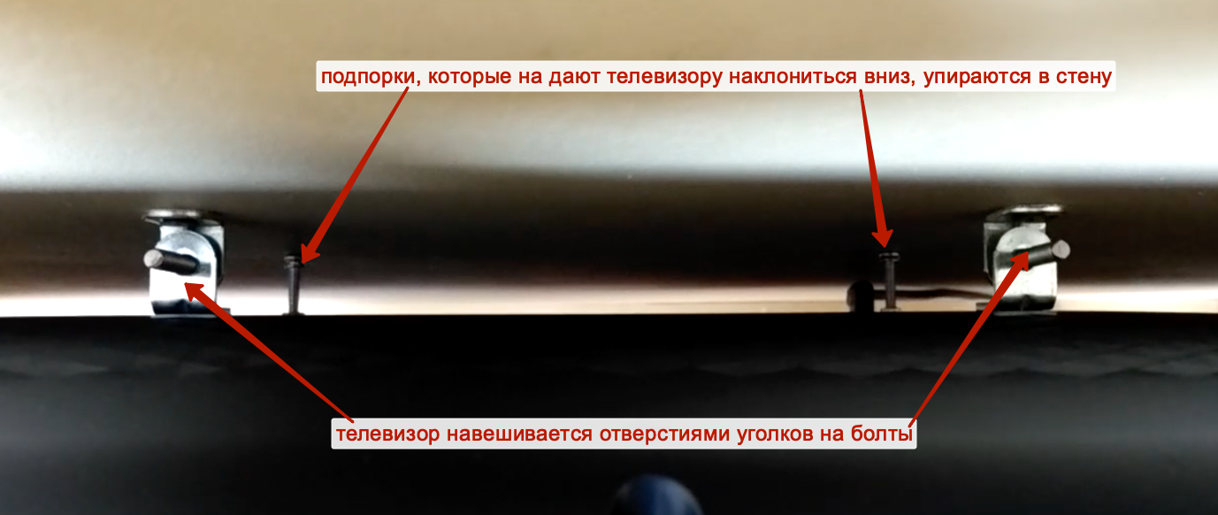 Теперь с помощью второго человека на них можно осторожно повесить телеприемник.