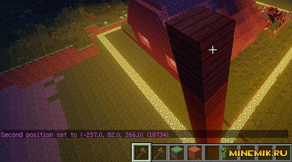 Они работают по тому же принципу, что и левый и правый клик топором, но тебе не придется подходить к блоку вплотную. Новичкам будет полезно использовать мод WorldEditCUI, с которым выделенные регионы будут отображаться в графическом виде.
