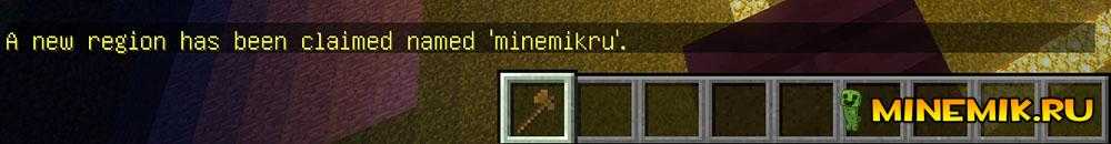 Отлично! Мы выбрали нашу область и теперь нам нужно только зарегистрировать наш участок! Для этого пишем /region claim minemik — вместо minemik вставьте название участка. Если все прошло успешно, то у вас в чате выведется этот текст: