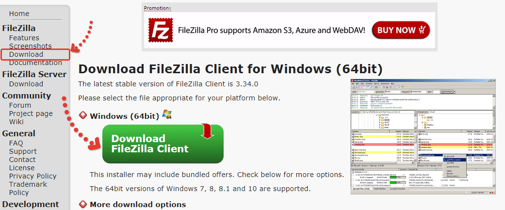 На сайте нужно перейти в раздел загрузки клиента (FileZilla — Download). Оттуда загружаем программу для Windows, кликнув по соответствующей кнопке.