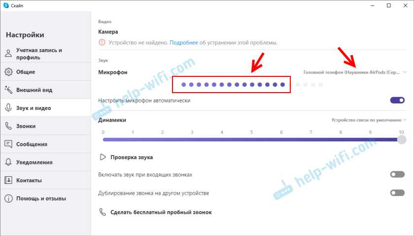 Такую же проверку можно выполнить в настройках практически любого приложения, которое использует микрофон. Например, в Скайпе.