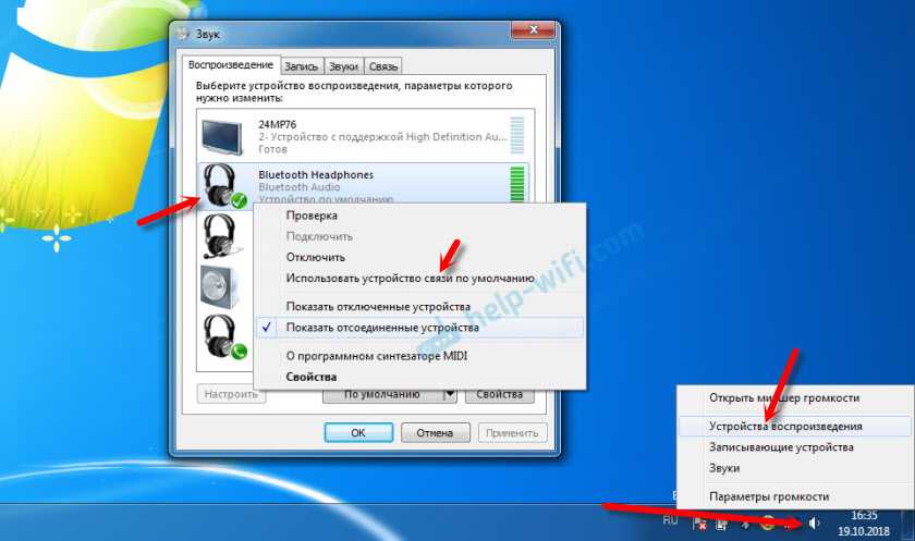 В устройствах воспроизведения нужно присвоить им статус «по умолчанию».