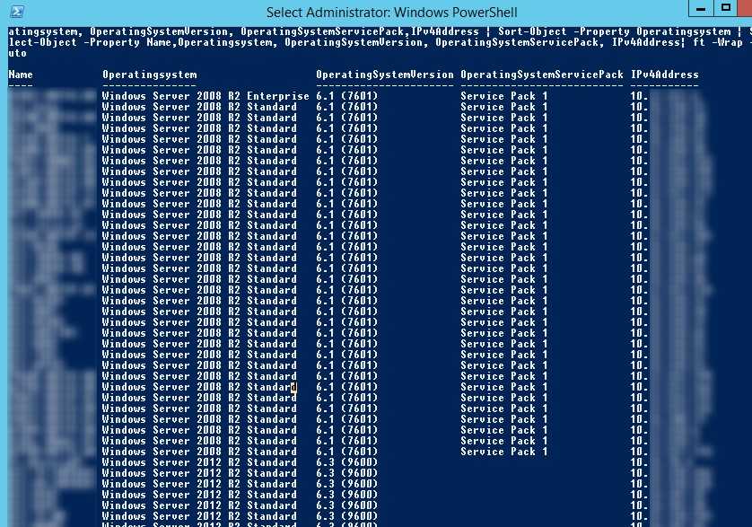Получить список серверов в домене с версией ОС, IP адресом и установленным Service Pack: