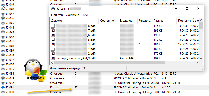 Через пол минуты, задания стали отправляться на печать, как видно их уже 37. Поздравляю мы вывели наш принтер из режима Offline.