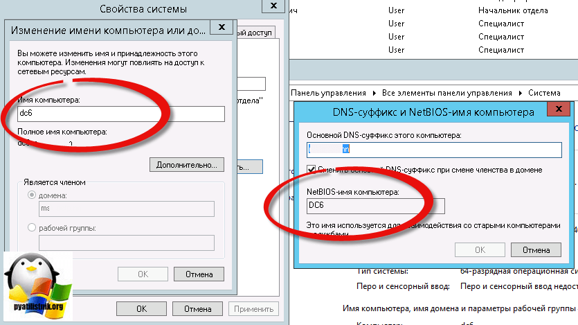 Disjoint Namespace > бывают ситуации, когда DNS имя контроллера домена или компьютера не совпадают с его NETBIOS именем, например если бы у меня контроллер имел NETBIOS имя dc6, а доменное dc.pyatilistnik.org. Такие конструкции работоспособны и могут быть при слиянии предприятий, но при Disjoint Namespace могут быть и грабли с тем же MS Exchenge. Ниже пример совпадения и NETBIOS и DNS имени.