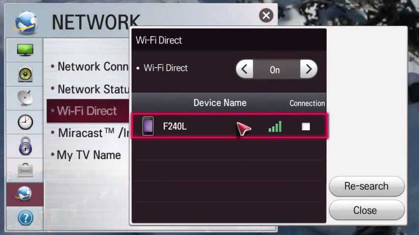 - На ТВ аналогично находим подключением Wi-Fi Direct.