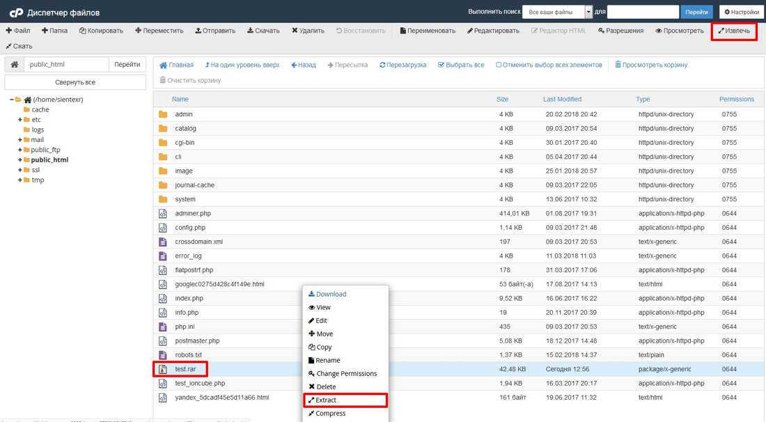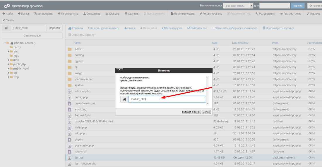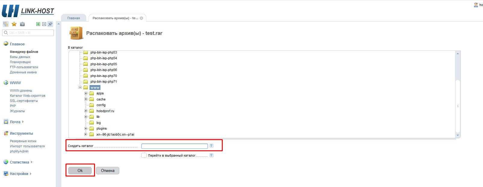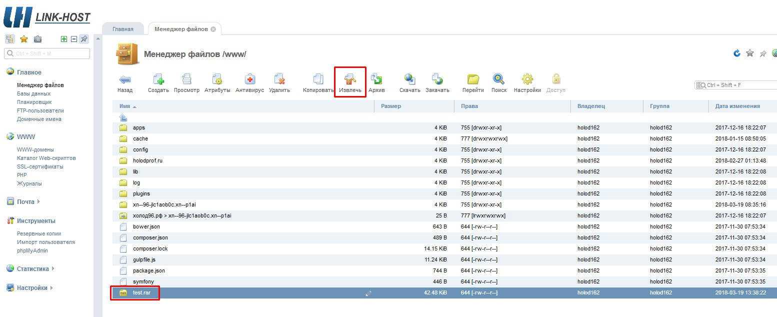 Не могу распаковать архив в менеджере файлов хостинга