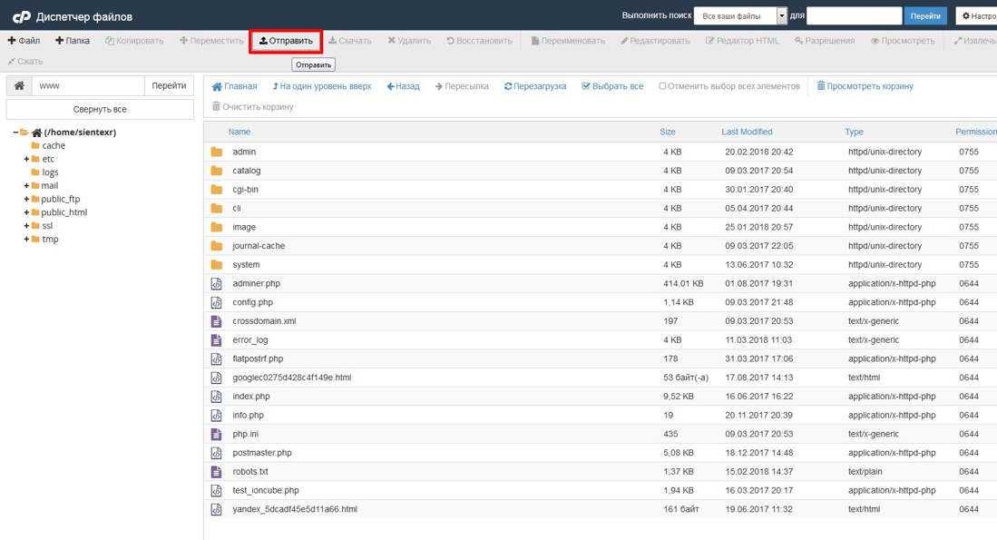ВНИМАНИЕ! У вас может отличаться название корневой папки. Это зависит от хостинга