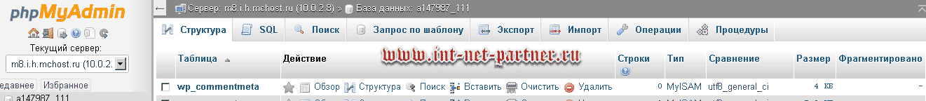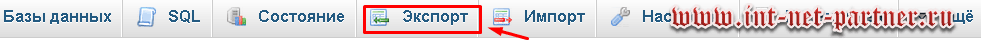 Это пространство для управления MySQL. Вверху, в меню нажимаем «Экспорт»