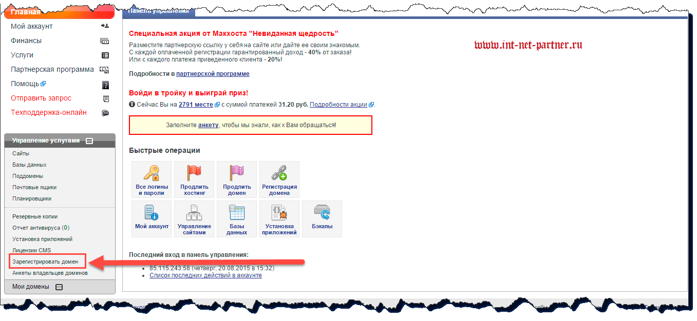 Как быть, если вы не хотите бесплатный домен? Элементарно, зарегистрировать его в личном кабинете!