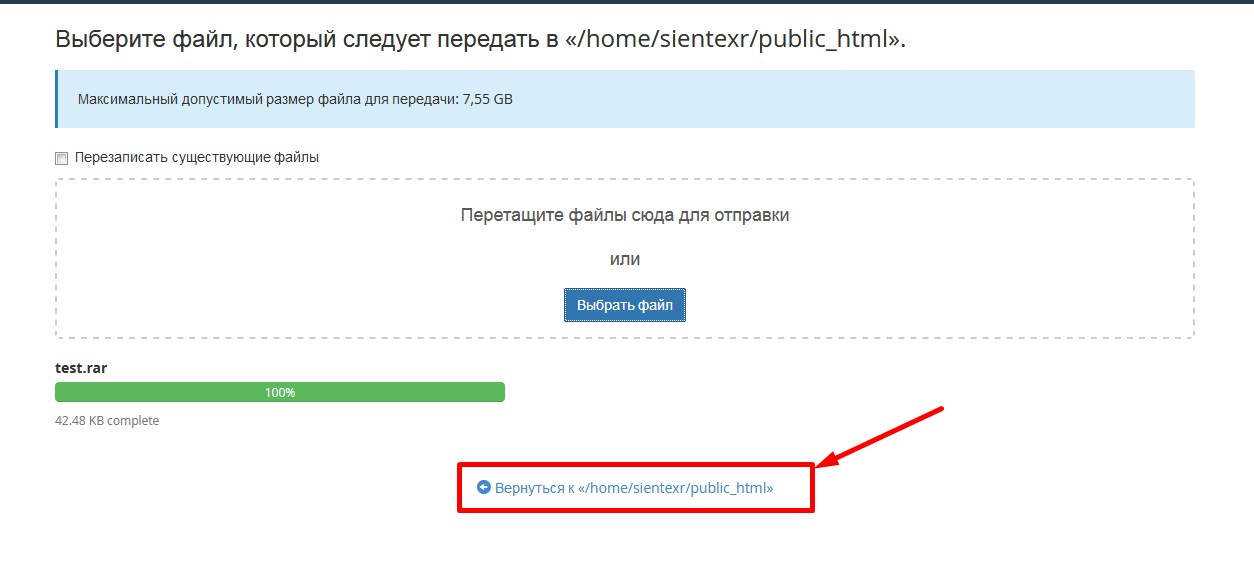 Всё, через несколько секунд архив закачан. Имейте в виду, что файлы размером более 1 Гбайта таким путем закачать не удастся, но вряд ли такие большие файлы Вы будете заливать.