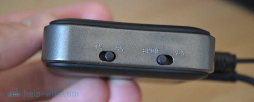 Так как у меня есть еще один трансмиттер, более дорогой и функциональный, то давайте посмотрим еще и на его примере. Все практически так же, только там режим приемника (RX) и активация режима подключения происходит немного иначе. И его с колонками мы будем соединять через оптический аудио кабель.