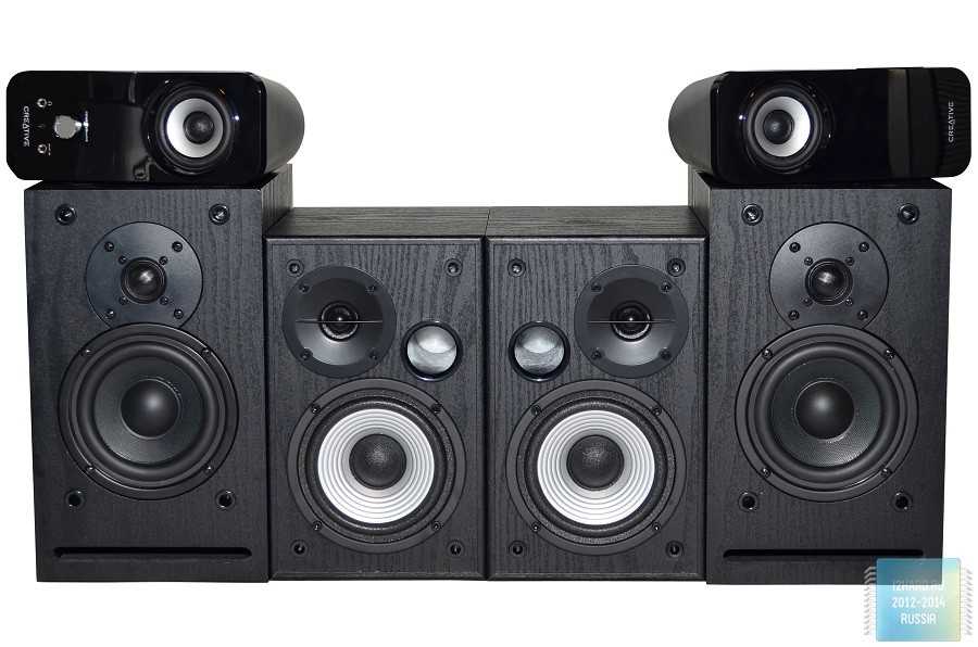 сабвуфер небольшого размера и сателлиты. Размер фронтальных колонок составляет