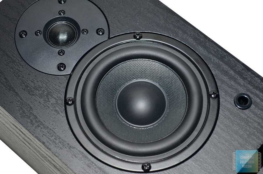 В двухполосных мультимедийных системах НЧ динамик воспроизводит не только нижний частотный диапазон, но и часть средних частот, тоже самое можно сказать и про ВЧ динамик. Таким образом достигается равномерное воспроизведение во всем частотном диапазоне. В данном случае диаметр НЧ-динамика 115 мм, а ВЧ-динамика 20 мм.