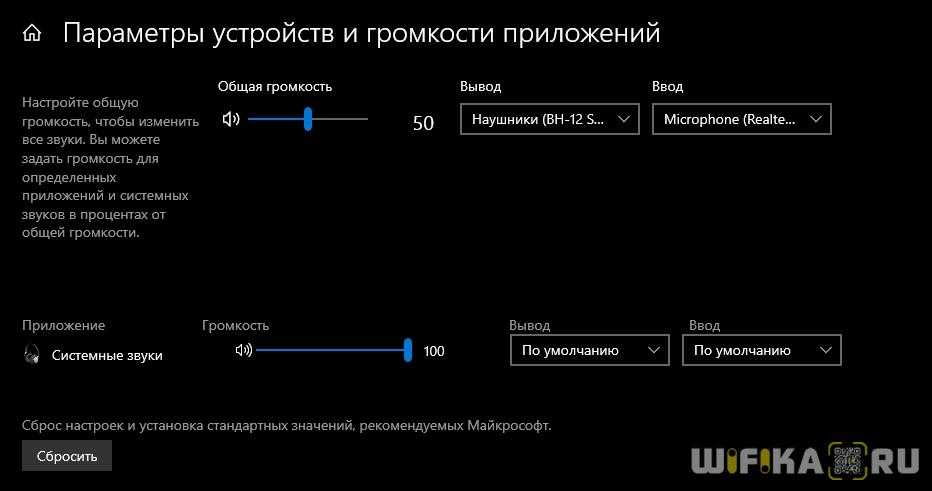 Здесь доступны настройки громкости, а также есть возможность использовать в качестве основного микрофон гарнитуры вместо встроенного в ноутбук.