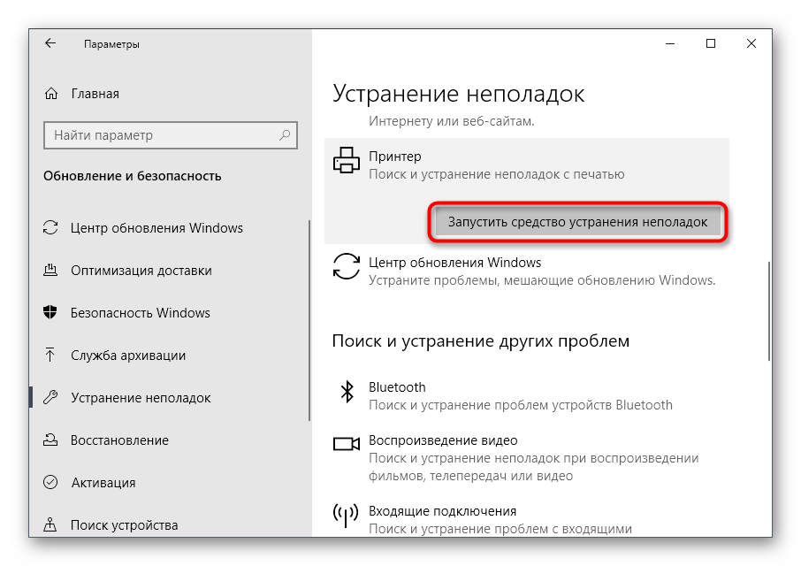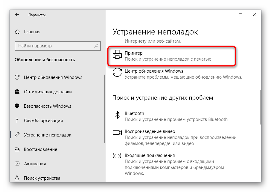 Встроенное в ОС средство устранения неполадок позволит решить базовые проблемы, возникающие при попытке отправить документ в печать. Использовать его нужно в первую очередь, чтобы исключить эти самые распространенные сбои.