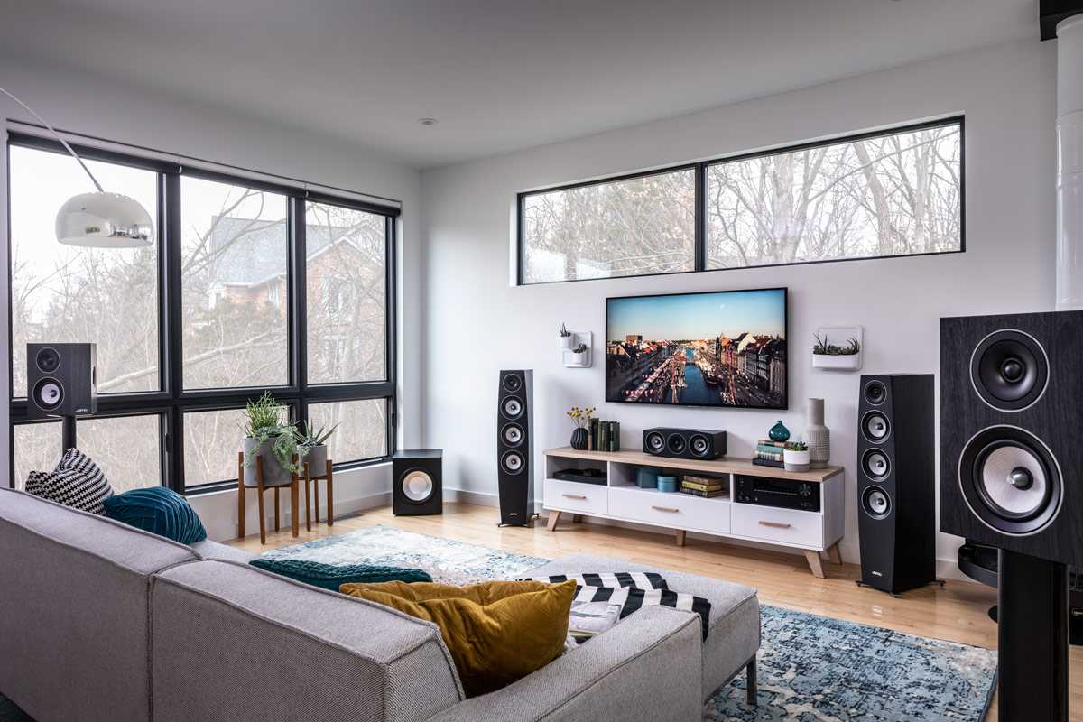 - Определитесь с диапазоном мощности акустической системы. Существуют сложные формулы для её расчетов, но стоит запомнить одно, что если колонки слишком громкие — тише их можно всегда сделать, а наоборот нет. Для комнаты размерами около 20 кв. м. Стоит присматриваться к моделям мощностью 35-50 Вт;