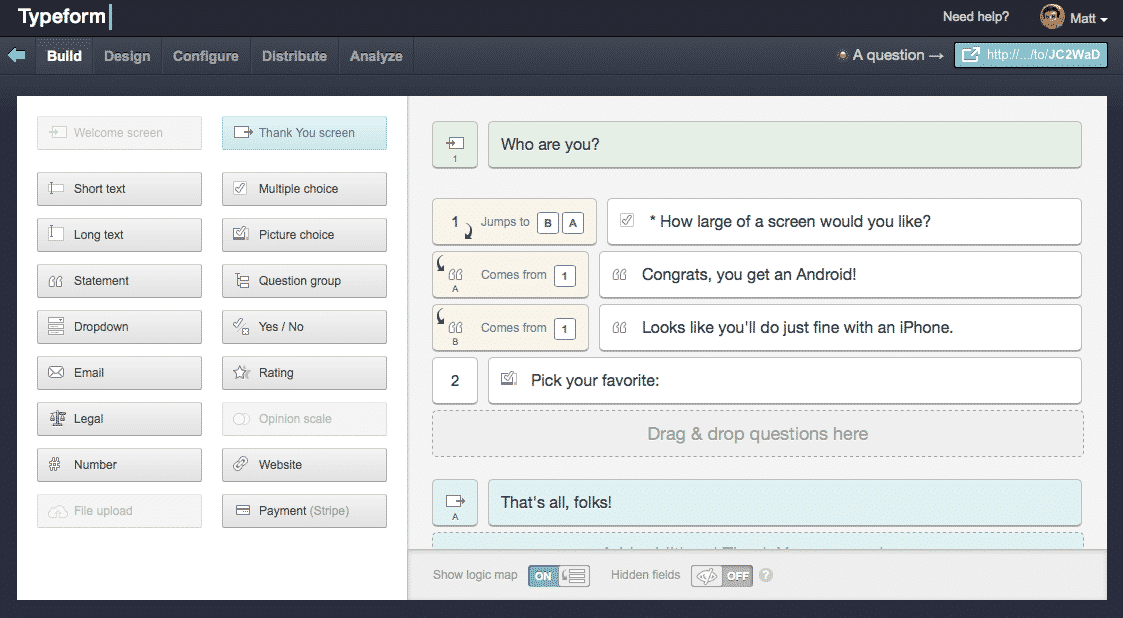 2. Typeform: для форм с современным дизайном.