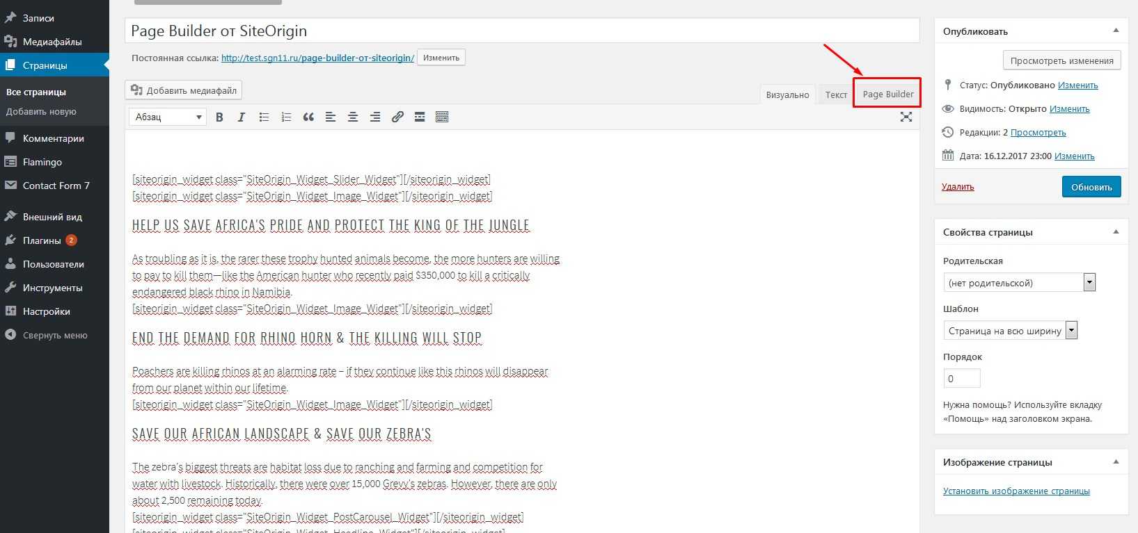 После его установки у вас при создании или редактировании страниц и записей появляется дополнительная вкладка: