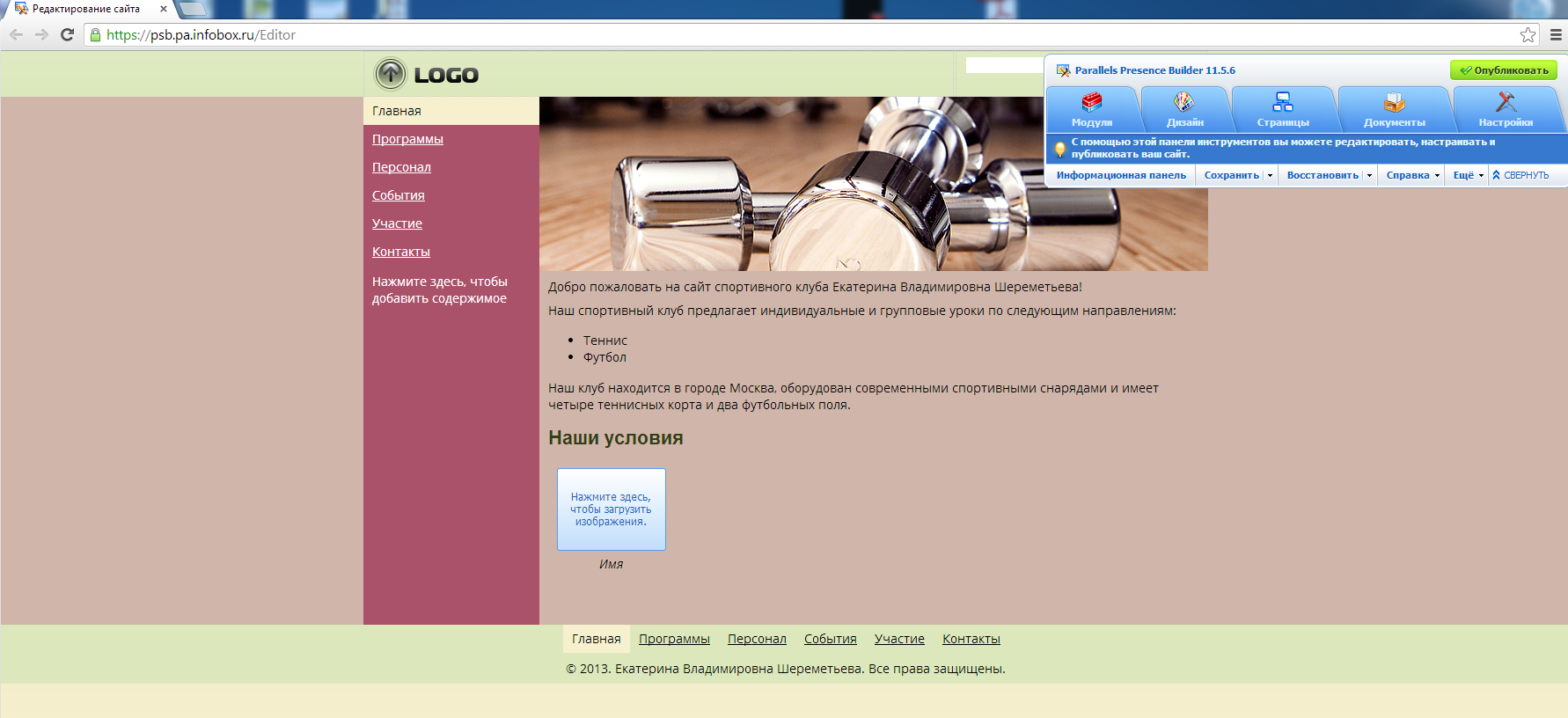 В сети прочитала, что Parallels Web Presence Builder неудобен тем, что привязан к хостингу и уйти от этого хостера с сайтом не получится. Абсолютно не согласна! Конечно, сайт, сделанный в Parallels Web Presence Builder, перенести в другой конструктор или CMS не получится, но, если уж не устраивает конкретно Reg.ru, то можно уйти к другому хостеру, у которого этот конструктор имеется. Сейчас просто лень искать, но я точно знаю, что такие хостеры есть.