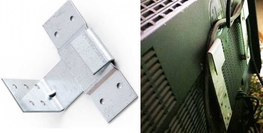 Второй вариант — использовать скользящие опоры для крепления стропил. Они есть разъемные, как на фото ниже. Загнутую в виде буквы «Г» пластину надо распрямить, просверлить в верхней части отверстие под крепеж, затем прикрепить ее к задней стенке телевизора.