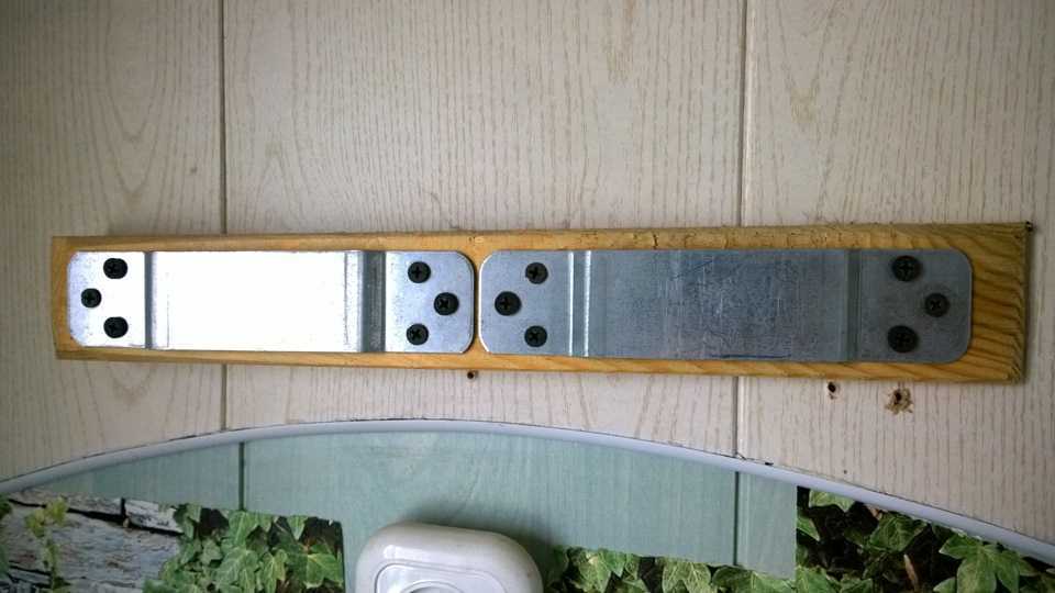 Ответные пластины крепят на стене. Можно — на брус. Тогда экран будет наклонен на некоторый угол вниз (как у автора этого способа). А если брус еще сделать со скосом в одну из сторон, то будет еще и поворот в нужную сторону.