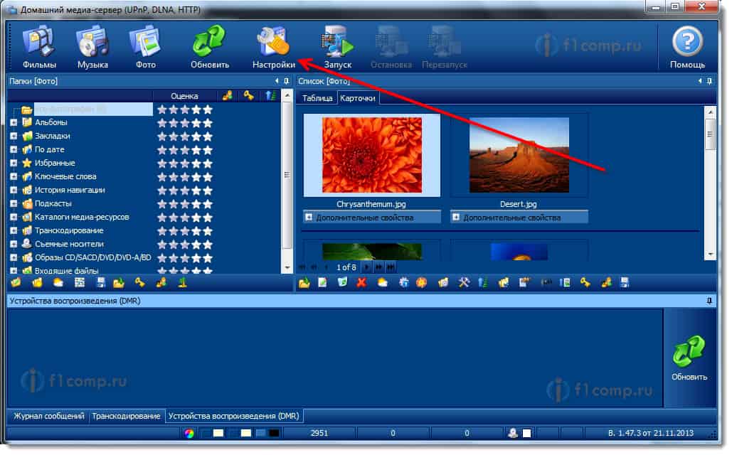Настройка программы “Домашний медиа-сервер (UPnP, DLNA, HTTP)”