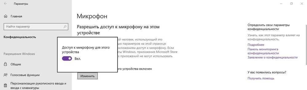 Может быть такая ситуация, что драйвер установлен, RHDA опознан, но все равно не работает. В этом случае нужно включить микрофон в настройках конфиденциальности Windows 10. Как это сделать:
