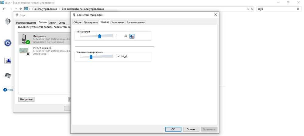 Настройка подключенного микрофона