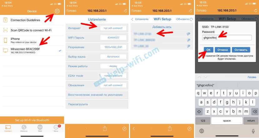 На скриншоте выше показал, как подключить MiraScreen или AnyCast адаптер к Wi-Fi роутеру (своей сети) через телефон.