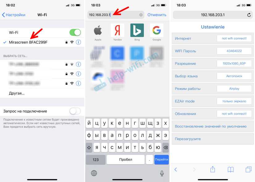 192.168.203.1: настройка MiraScreen адаптера с Android или iPhone