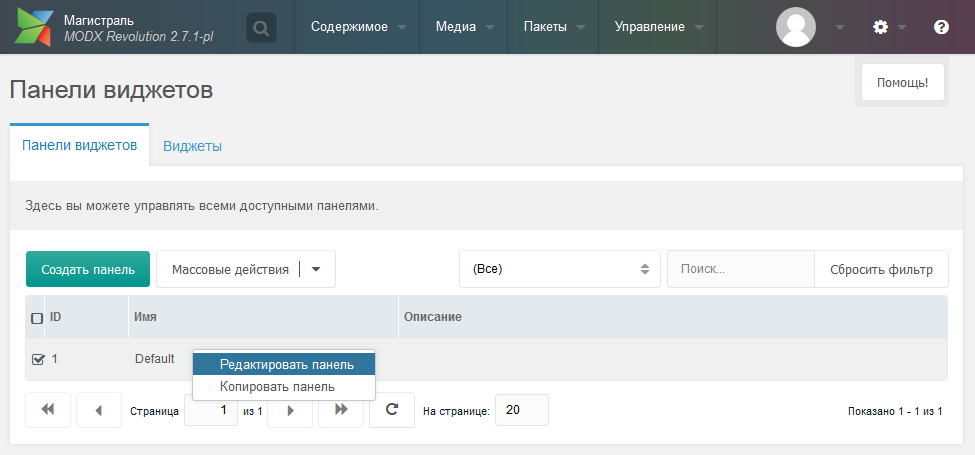 - правой кнопкой мыши нажмите на названии вашей текущей панели, как правило это Default и выберите Редактировать панель.