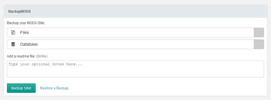 Если всё сделали правильно, на главной странице админки появится виджет BackupMODX, позволяющий делать бэкапы.