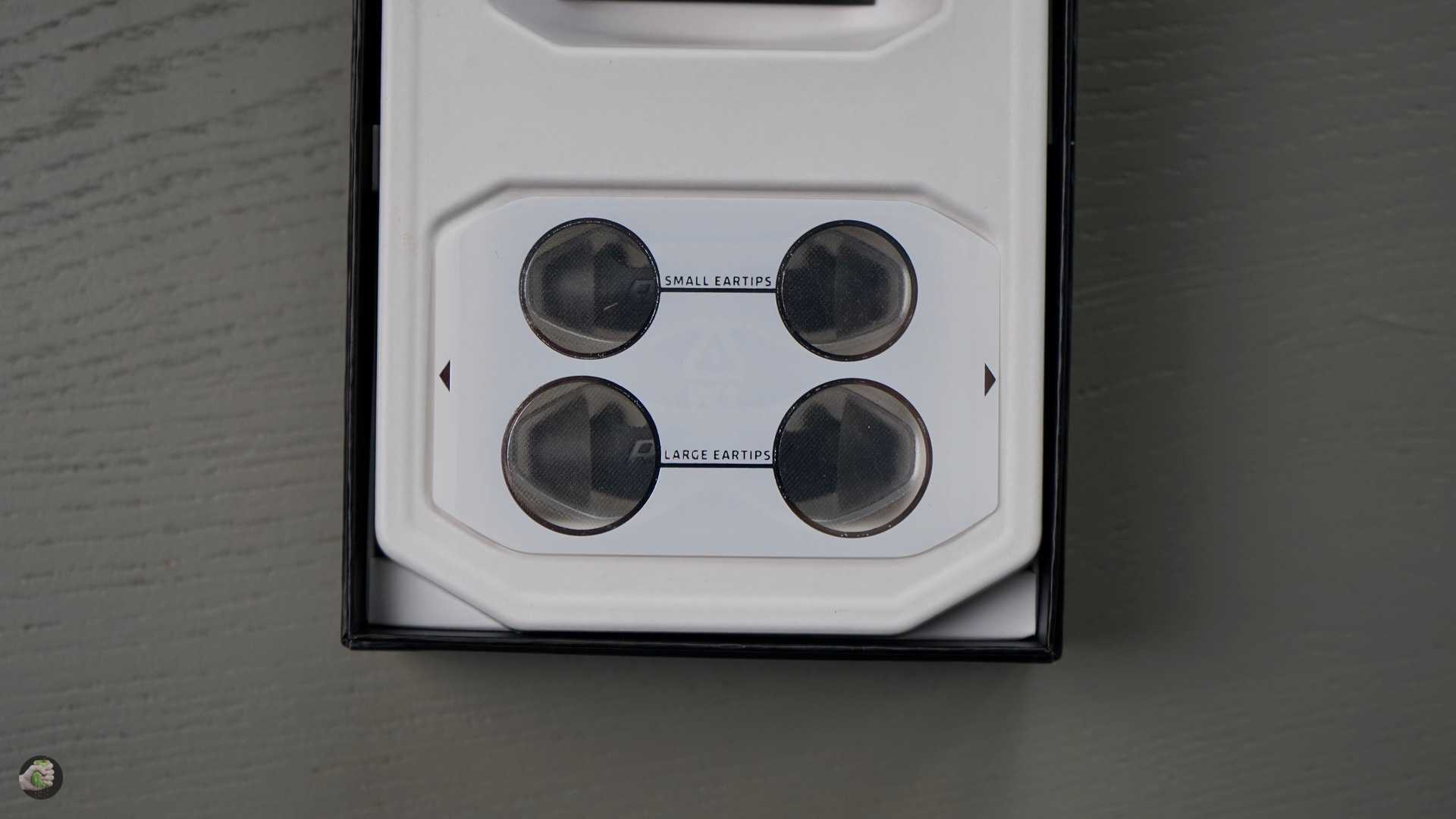 Гарнитура поставляется в небольшой коробке из картона, передняя панель которой открывается в виде книжного разворота и крепится при помощи небольших магнитов. После ее откидывания обзору предоставляется наушники, зафиксированные под прозрачным пластиком на рельефном постаменте.