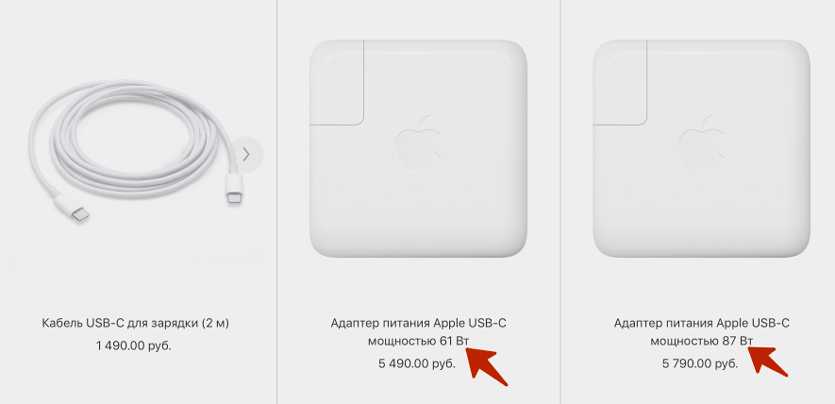С 12-дюймовым MacBook поставляется кабель с максимальной мощностью зарядки до 61 Вт. С MacBook Pro 13 и 15 дюймов 87 Вт соответственно.