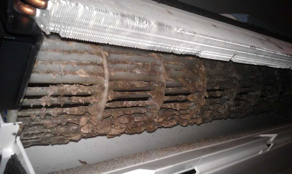 - Загрязнение деталей, чаще всего происходит обмерзание теплообменника кондиционера в связи с загрязнением его пылевыми частицами. Нормальная работа прибора станет возможной после чистки.