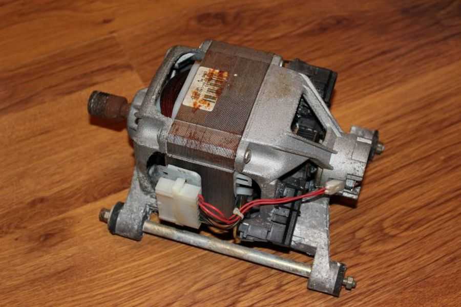 - Стирка запускается, однако, звука работающего двигателя нет, барабан не крутится, появляется ошибка. Проблема может заключаться в проводке, контактах. В таком случае электронная цепь обрывается и сигнал просто не доходит. Другой вариант – неисправность мотора. Обычно связана с испорченной обмоткой или утечкой на корпус. Контакты можно просто пропаять заново, а в остальных случаях потребуется замена сломанной детали.