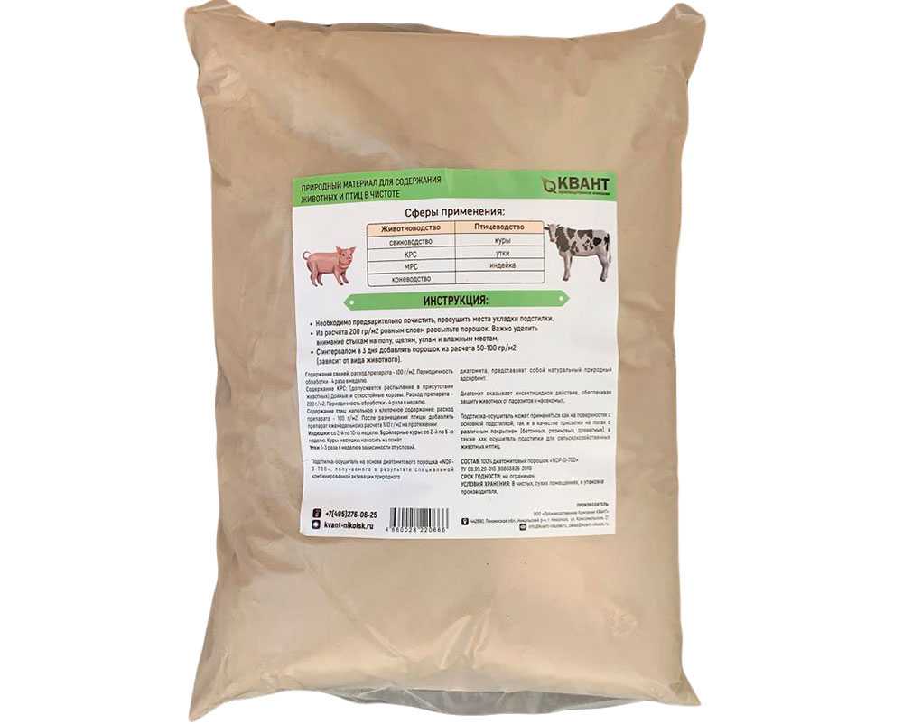 Подстилка-осушитель для сельскохозяйственных животных и птиц (порошок диатомитовый тонкодисперсный NDP-D-700) изготавливается на основе диатомитов, представляющих собой натуральный природный адсорбент.