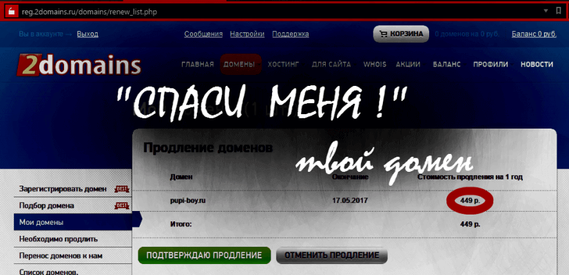 Много кто пользуется 2domains, кампания быстро заслужила некоторое доверие и привлекла своими низкими ценами на ru домены. К сожалению, эти времена уходят в прошлое и на сегодняшний день капания просто водит за нос неопытных пользователей, которые, начитавшись уже неактуальных статей, рвутся приобрести свой «дешёвый» домен за 99 рублей (сейчас 149). Заполучив домен, они попадают в плен, ведь цена продления доменного имени у этого регистратора растёт из года в год и на данный момент составляет 549 рублей, что более чем в четыре раза выше стоимости покупки. *Только после 5 (достаточно много) минутного лазанья по сайту, я отыскал сокровенную кнопку «Показать стоимость продления», которая никак не выделяется среди других элементов. *