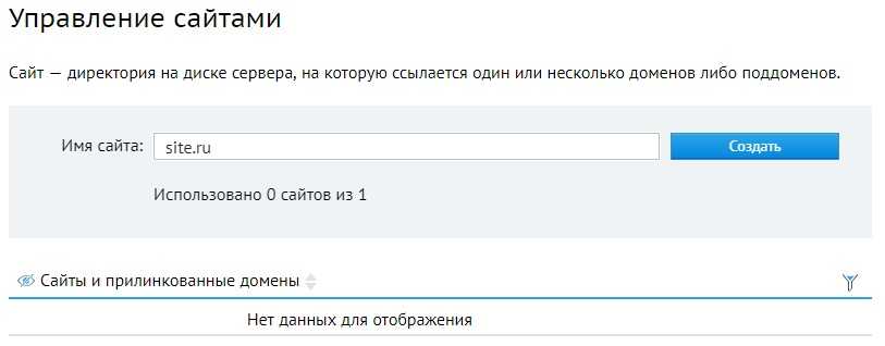 В этом разделе подразумевается, что домен Вашего будущего сайта уже куплен и для него прописаны NS-сервера хостинга (информацию о NS-серверах хостинг-компания обычно сообщает сразу после заказа услуги). Теперь к хостингу нужно привязать имя Вашего домена. Для этого в панели управления хостинга необходимо выбрать раздел Управление сайтами.