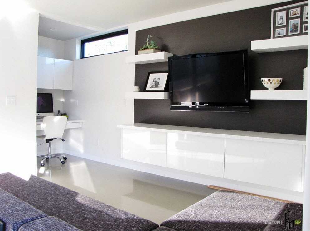 С другой стороны, если дизайн комнаты выдержат в стиле минимализм, то настенная полка-кронштейн – это хорошее решение для размещения телевизора.