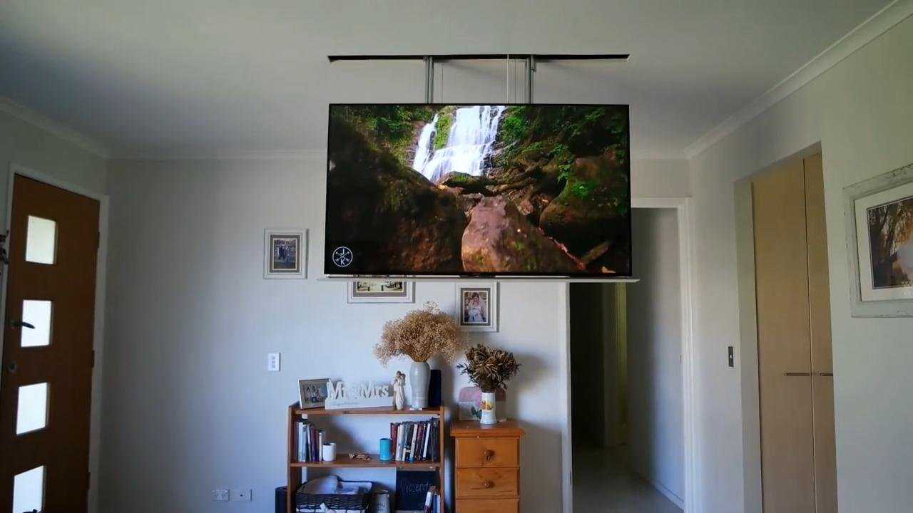 Эти кронштейны управляются с пульта, чтобы повернуть телевизор, вставать не придётся. Чаще всего такие модели представляют собой электромеханический лифт, который способен, опускать, поднимать и прижимать экран к потолку или прятать в короб. Но моторизированными могут быть и другие конструкции. Стоимость подобных потолочных лифтов намного выше, чем предыдущих моделей.