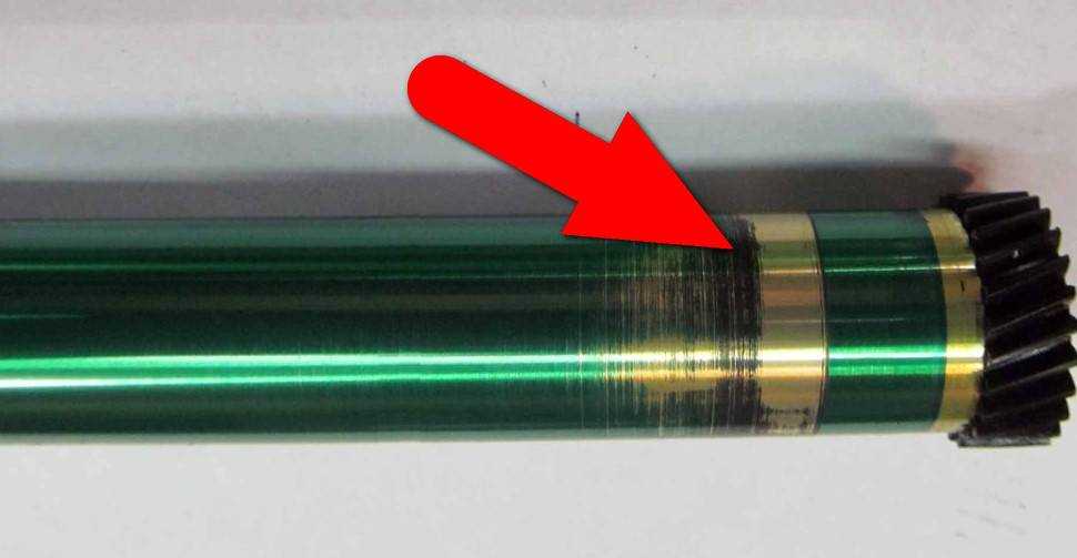 Фотобарабан – это достаточно важный элемент, и именно от него отражается лазер во время процесса печати. Само повреждение вала практически исключено, а вот его поверхность, чувствительная к излучению, часто изнашивается и начинаются определенные проблемы с появлением черных полос по краям напечатанного листа. Они всегда одинаковые, что и позволяет легко идентифицировать дефектное место.