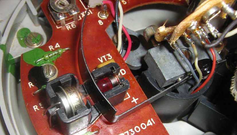 Дальше пришлось сделать регулировку узлов аппарата. Я разобрал привод стола, смазал его и собрал обратно. С ним проблем не возникло, а вот потом все пошло не так гладко. Вероятно, сборка на предприятии была не очень-то высокого качества, поскольку находящиеся под заводским лаком регулировочные винты были настроены неправильно. Тонарм при повороте двигался с заеданием. Причина скрывалась в шторке автостопа — ее криво установили и она касалась корпуса.