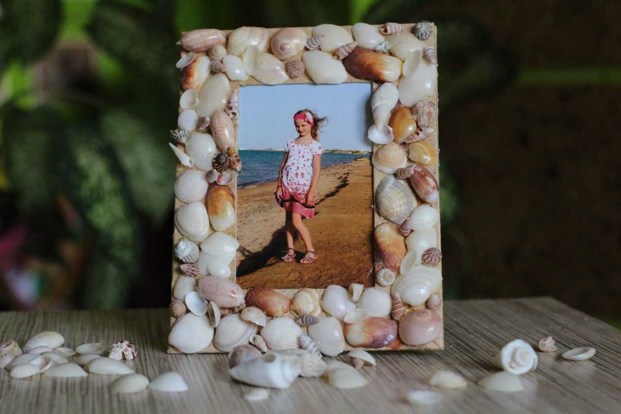 Это один из благодарных материалов для украшения своими руками фотографической рамки. Для оформления нужны ракушки различной формы и величины. Кроме раковин, в инкрустации уместно использовать интересные стеклышки, морские камушки и прочие находки, сделанные на морском или речном берегу.