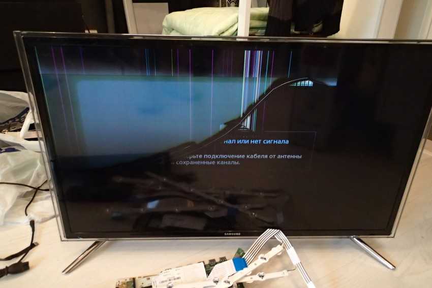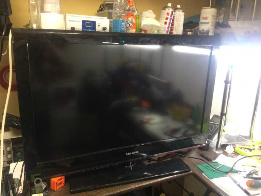 На фотографии видно, что в месте падения лучей от фонарика немного просматривается изображение с экрана телевизора. Если в вашем случае наблюдается та же картина, значит матрица телеприемника исправно работает — это хорошая новость, потому как ее замена будет стоить примерно 70% от стоимости самого телевизора. Если же требуется отремонтировать только подсветку, то эта процедура не столь дорогая.