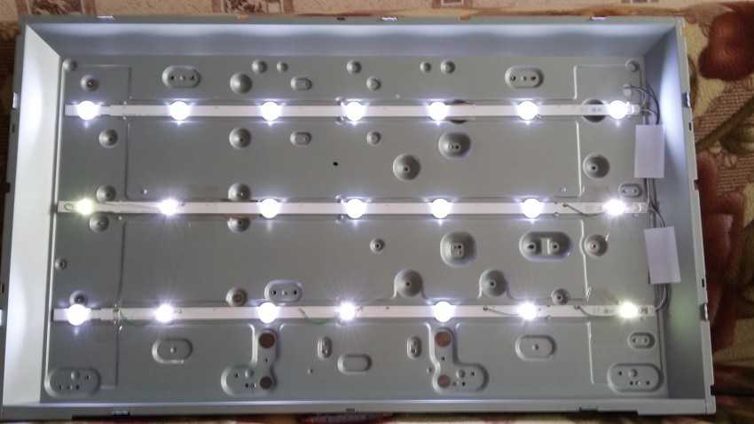 При выходе из строя одного из светодиодов гаснет вся линейка. На экране это явление отразится в виде затемнения некоторой области. Самостоятельно заменить перегоревший элемент на аналогичный не получится, так как найти точную копию с такой же линзой практически невозможно. В итоге замене подлежит вся линейка.