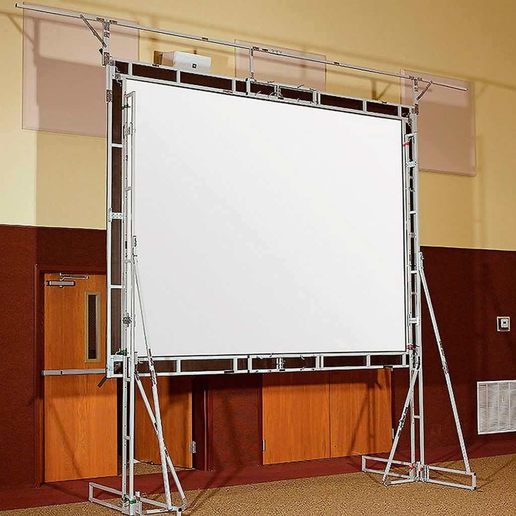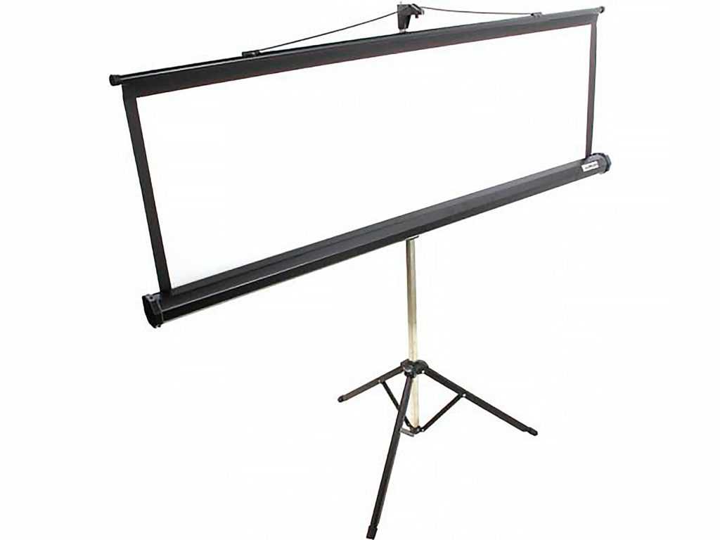 Переносные экраны представляют собой штатив или треногу, на которой разворачивается экран. Такой экран есть смысл покупать, если предполагается его использовать для единичных собраний в арендуемых помещениях, где невозможно установить полноценный стационарный экран.